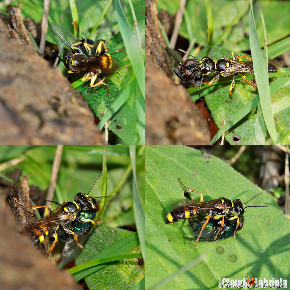 A quel che mi disse una volta Roberto, i Crabronidae dovrebbero alimentare le larve con prede morte, riaccedendo più volte alla tana. E questo spiega la cattura di mosche piccole che, da sole, non sarebbero state sufficienti.