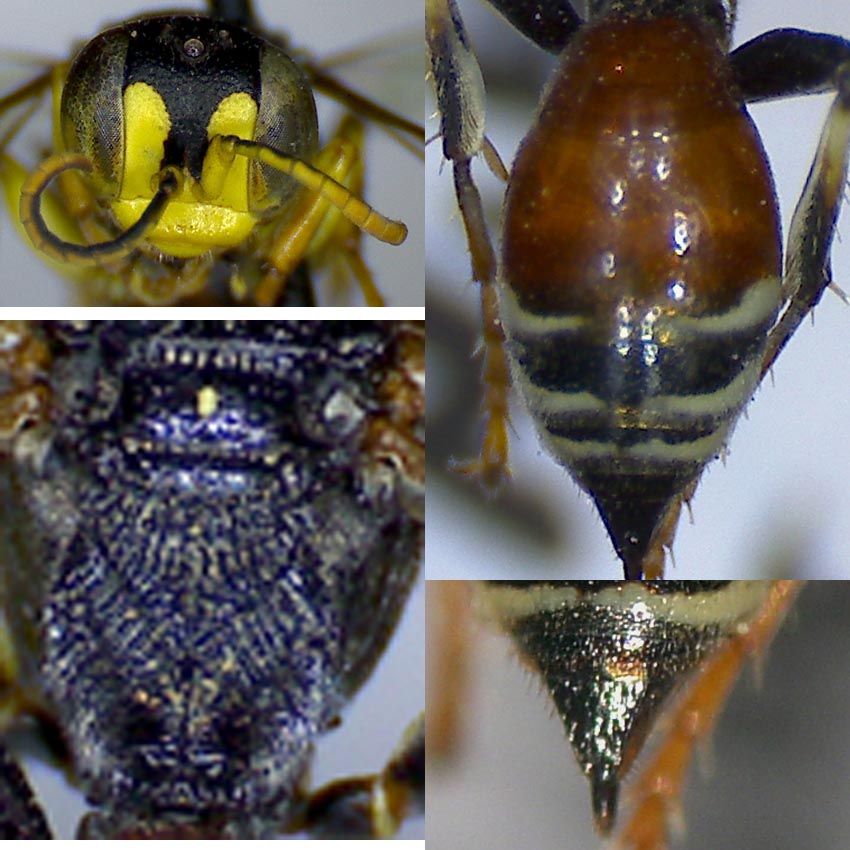 Con le chiavi della fauna d'Italia e di quella di Francia si arriva, come dici tu, a elegans. L'unica femmina che ho in collezione (di Domusnovas, tra l'altro...) è praticamente identica alla tua. L'aspetto generale, la colorazione delle antenne e, se vedo bene nella foto, la striatura del triangolo propodeale (che in exiguus si annulla posteriormente; nella tua foto si vede male, però...), concordano con questa specie. Solo per scrupolo, però, (derivante da insufficiente conoscenza di questi crabronidi e dal fatto che sto ragionando su delle foto) la archivierei come Harpactus cfr. elegans.