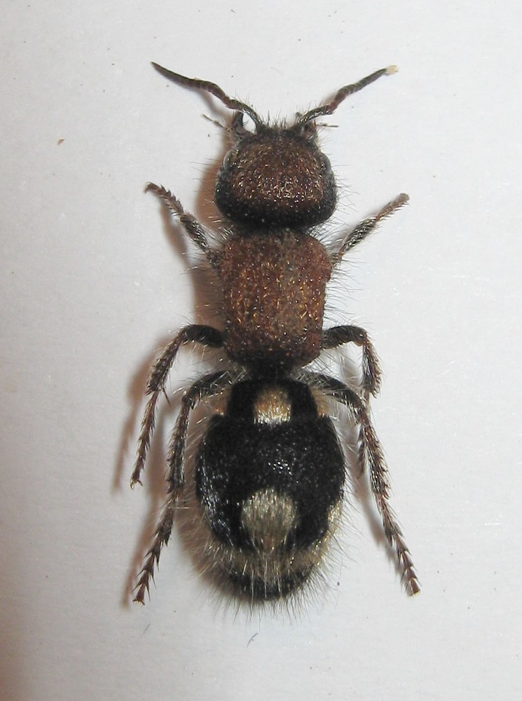 Ciao Roberto: grazie del pensiero Si tratta di una femmina di Ronisia brutia (Petagna, 1787), la stessa raffigurata nel mio avatar Ė fra le specie di maggiori dimensioni fra quelle italiane, raggiungendo anche i 16 mm. (ma se ne possono incontrare anche esemplari di 7 mm.!). Spesso si aggira intorno ai nidi di Chalicodoma spp., che sono fra i suoi ospiti preferiti. In inverno mi è capitato più volte di incontrare femmine in diapausa sotto le cortecce di eucalipto. Aggiungo due foto che testimoniano questi incontri.