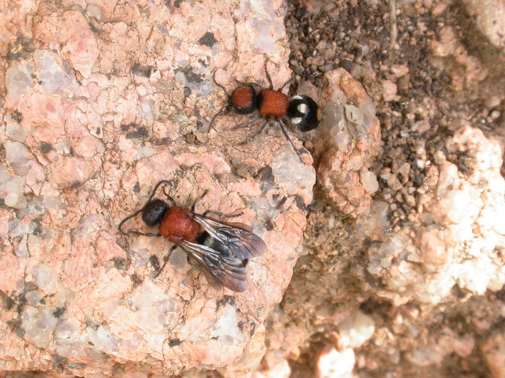 Dopo che gentilmente Piero ha confermato qui la specie (viewtopic.php?f=11&t=11811), metto una foto diciamo 'artistica' della coppia di questo bel mutillide: dico 'artistica' perché gli esemplari sono preda di Morfeo ;) ....Presi l'11 settembre 2010 presso il Monte dei Sette Fratelli (Sardegna meridionale):