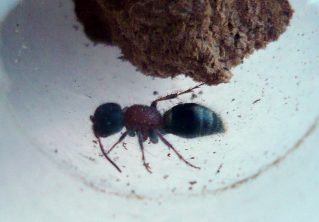 Viste le alette, che con tutta quella peluria si vedono solo da sotto, direi Myrmilla (Myrmilla) calva (Villers, 1789), ♀ - Mutillidae Myrmillinae ma la sicurezza 100% ce la può dare solo Velvet ;)