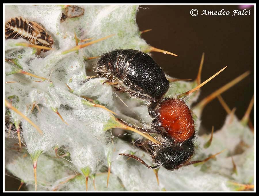 Mutillidae da determinare. L'ho osservato in una pianta di Onopordum illyricum alle ore 9,00 in prossimità di larve di emitteri (credo), probabilmente le stava parassitizzando, alle ore 13,00 era ancora nello stesso posto.
