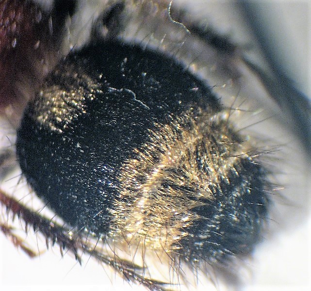 In particolare nelle mie N. viduata di Sardegna la fronte è rossastra e comunque ricoperta da una folta macchia di peli argentei, l'unguicolo scutellare è ben evidente (dalla foto sembrerebbe non evidenziabile), la fascia argentea del gastro è prolungata in punta in avanti e la macchia rotondeggiate è meno estesa. Una foto dell'area pigidiale sarebbe opportuna, comunque aspettiamo il parere di Marcello.
