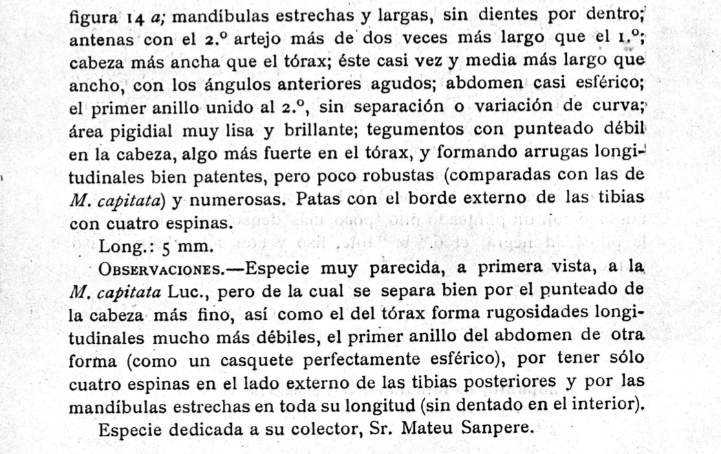La descrizione originale di M. mateui è accompagnata, fortunatamente, anche da un disegno dell’habitus complessivo e dunque permette un più agevole confronto.