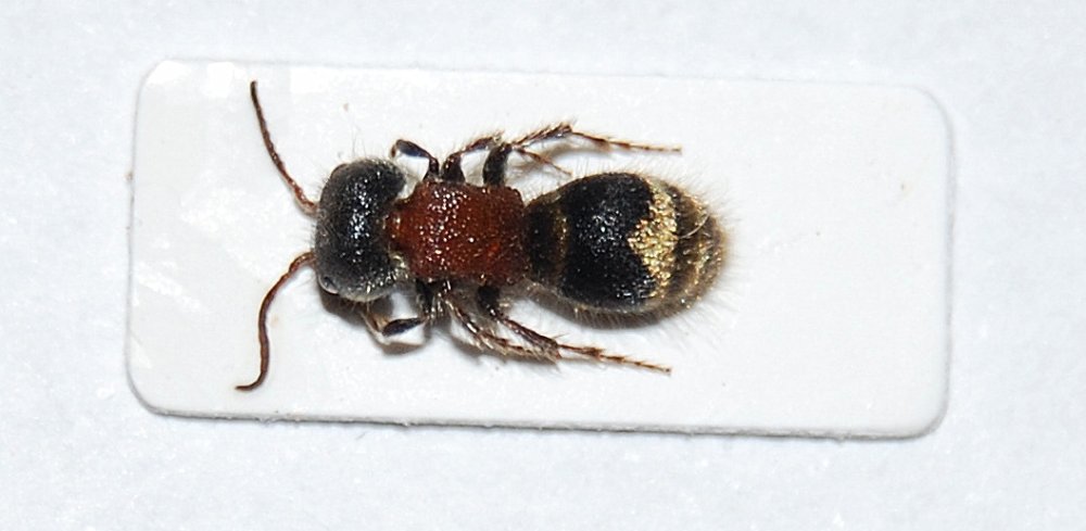 l'ho trovata ai gessi reggiani che camminava sul sentiero dove stavo mangiando il 17 maggio di quest'anno, penso possa trattarsi di Mutilla quinquenmaculata, ma solo per confronto molto superficiale di una foto di Marcello, a cui dedico la discussione :lov2: , confermate o si tratta di un'altra specie, o addirittura di un'altro genere, è piccolissima, la lunghezza è circa di 7 mm, mi scuso per la scarsa qualità della foto e per la preparazione che lascia molto a desiderare :oops: :)