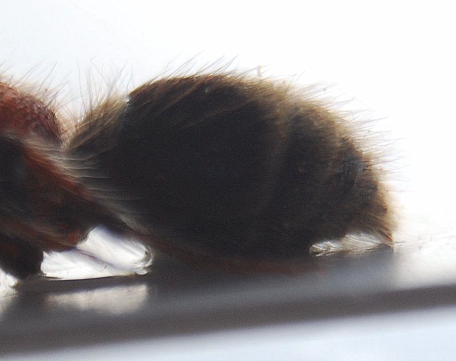 chiedo venia Roberto, solo una volta inseriti i due messaggi me ne sono reso conto :no1: , ecco una foto, brutta, dell'addome, l'uncino io non lo vedo, ma non ho molto occhio, anzi, proprio per niente :cry: , per queste cose, spero che si riesca ad intuire, sennò provo ad illuminare non col flash, altrimenti alla prossima entomodena :D :) :