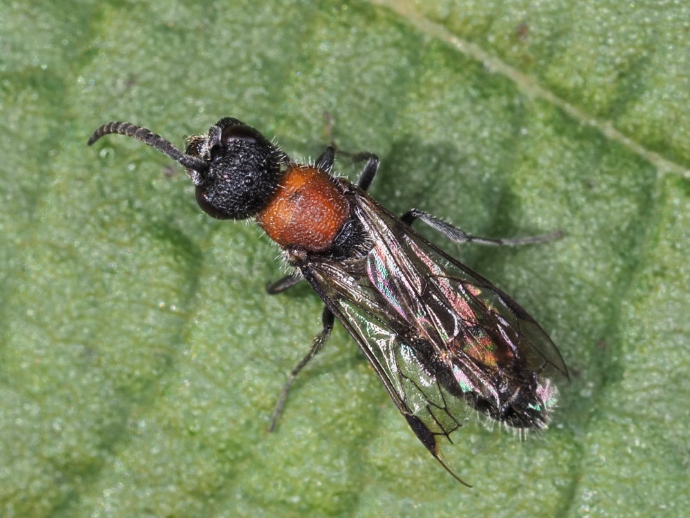 Si tratta di un maschio di Krombeinella thoracica (Fabricius, 1793) (Mutillidae Myrmosinae)