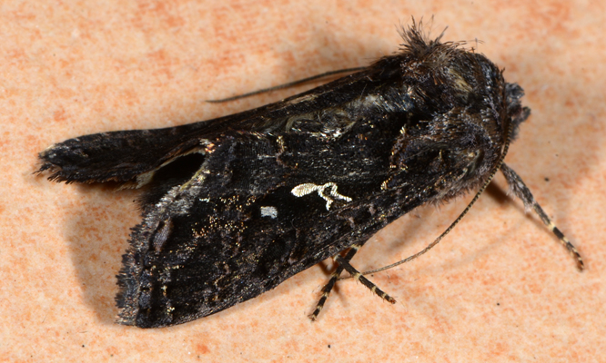 Penso sia Trichoplusia ni (Hübner, 1803), con qualche dubbio per Ctenoplusia limbirena (Guenée, 1852) che ha la stessa macchia bianca. Io sarei più per la prima, ma magari sbaglio.