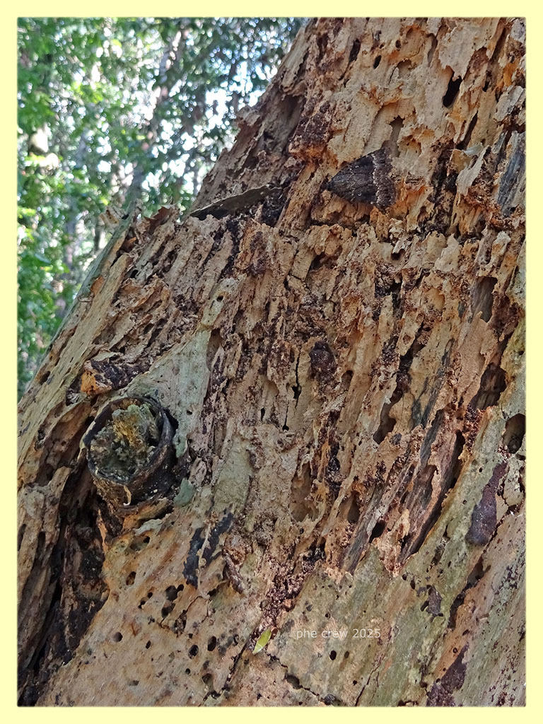 Trovati parecchi esemplari che si nascondevano sotto le cortecce specialmente di Pino morto, facevano a gara con Euplagia quadripunctaria a chi era piu' abbondante...ma loro ovviamente erano tra l' Edera o posate sui tronchi o rami.
