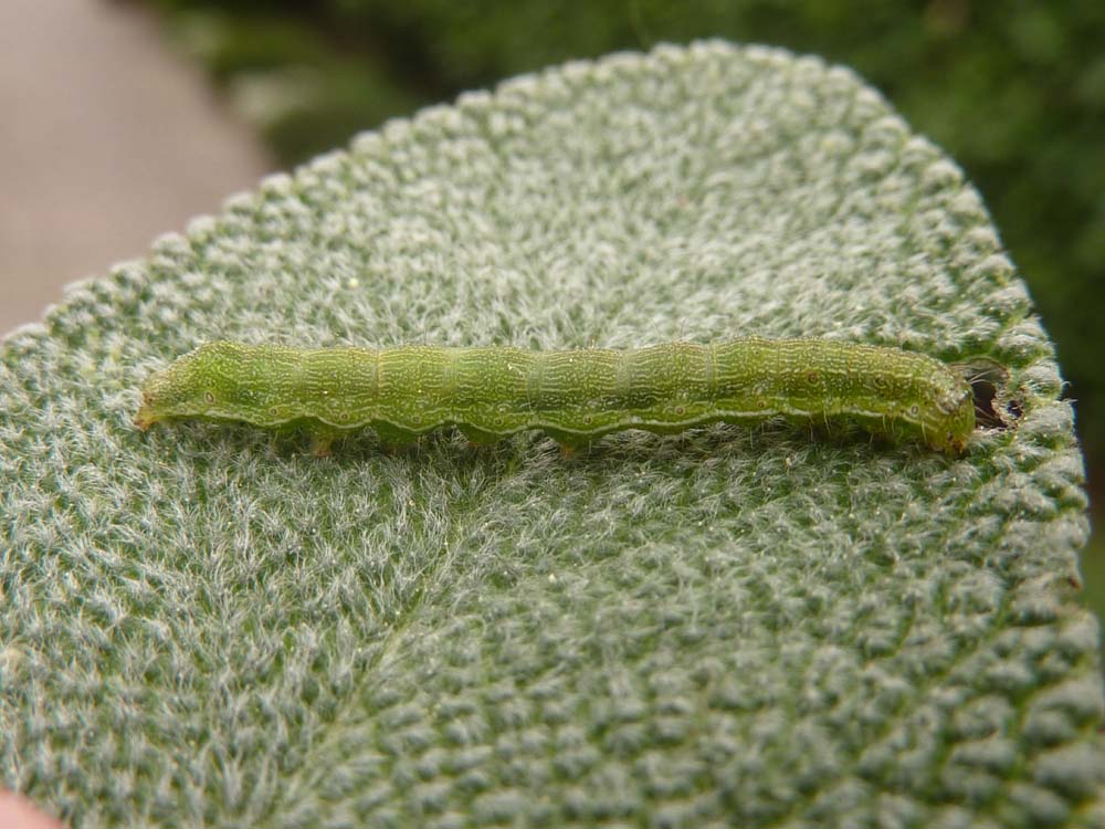 Buongiorno a tutti! Ho trovato stamane questa larva su una foglia di Salvia officinalis, qualcuno saprebbe dirmi di che si tratta? 16/10/2010