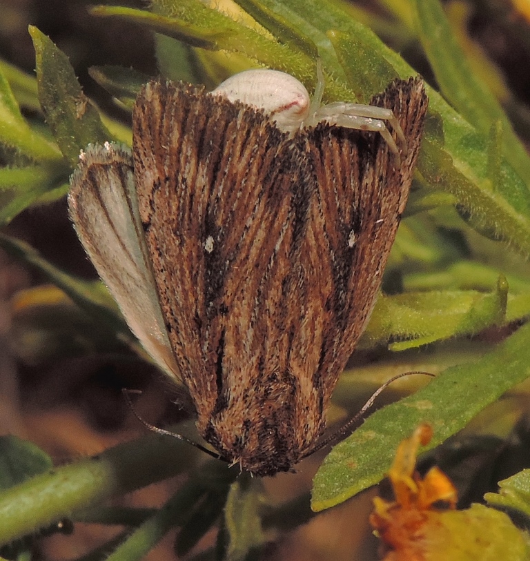 Leucania (Leucania) putrescens (Hübner, 1824) - Noctuidae predata da Thomisus onustus Walckenaer, 1805 - Thomisidae