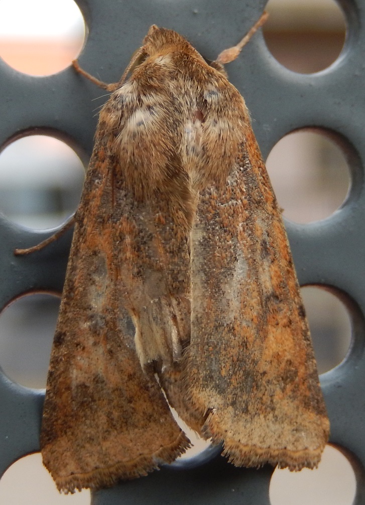 Ah! Quella era una delle vaghe somiglianze che avevo preso in considerazione, e ne ho fotografata una anch'essa in giardino (il 9 ottobre), come questa. Mi sembravano un po' troppo diverse, perché quella aveva una banda scura, seppure irregolare e sfumata, ma comunque distinguibile, rispetto a questa. Certo, guardando non solo la mia foto precedente ma tutte quelle in archivio, queste H. armigera hanno sensibili variazioni anche loro, come le Agrochola. Mah? Comunque grazie!