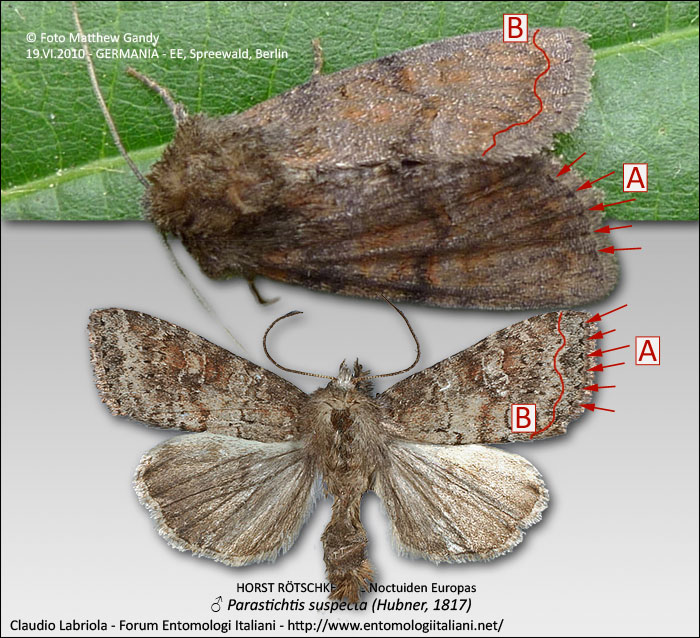 Vi propongo di seguito un altro confronto tra il soggetto proposto da Matthew e Parastichtis suspecta (Hübner, 1817), esemplare sempre proveniente da Die Noctuiden Europas.