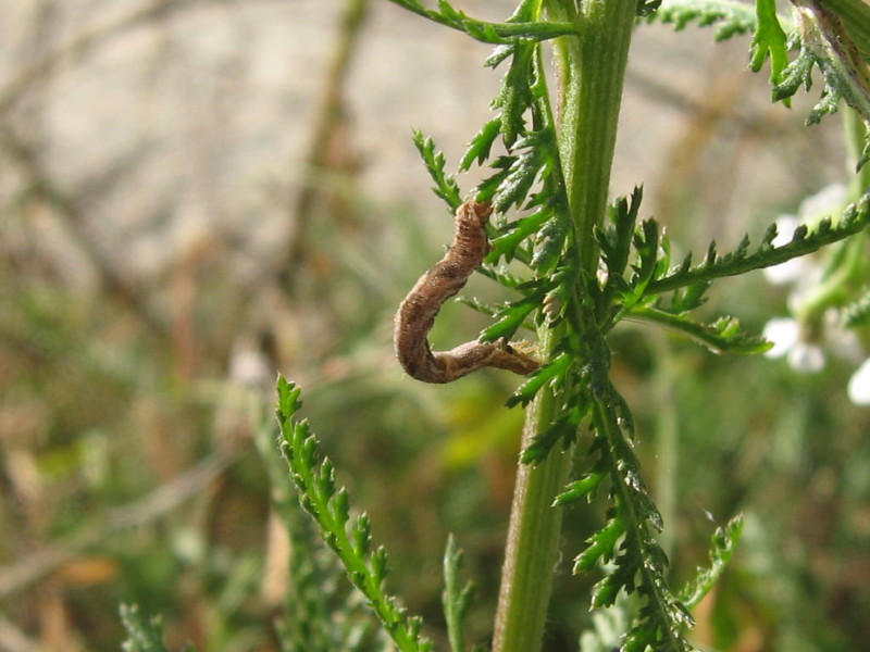 Su Achillea millefolium una larva di Geometridae.