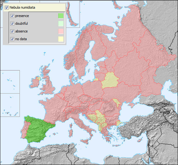 Display on map, Distribuition of Nebula numidiata: