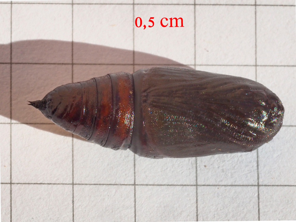 E’ nata oggi, anche se l’allevamento risale al 31 agosto 2020. La pianta nutrice era Centaurea nigrescens Willd. Contemporaneamente è nato un esemplare maschio della stessa specie, la cui piante nutrice era Symphyotrichum lanceolatum (Willd.) G.L. Nesom. Nel 2019 ne ho allevata un’altra che aveva come pianta nutrice Acalypha australis L.