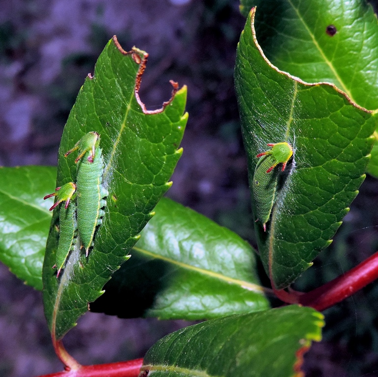 Osservo adulti di Charaxes jasius (Linnaeus, 1767) che svolazzano da ca. 25 giorni, nel mio giardino, in prossimità di un Alloro. Oggi finalmente ho trovate uova e bruco sulle foglie di Alloro Laurus nobilis nonostante la presenza di una pianta di Corbezzolo Arbutus unedo a 15 metri. Nuova specie per casa mia. :)