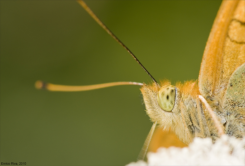 Di farfalle ne capisco poco ma sfogliando la guida Collins mi pare di averlo identificato come Argynnis paphia. Fotografato a S. Giacomo di Entracque sul sentiero che porta al rifugio Soria Ellena, nel parco naturale delle Alpi Marittime a 1.513 mt slm. ( e con il pupetto grande sulle spalle... :cry: )