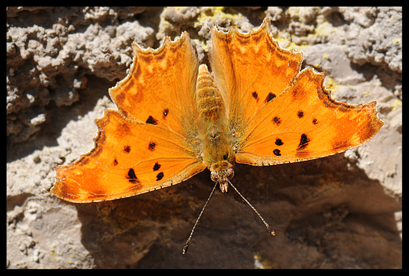 Rara dalle mie parti, mentre la P. c-album la incontro quasi tutte le volte che esco a far foto questa l'ho incontrata solo una volta, stava lungo il percorso della ex ferrovia Spoleto Norcia, tra le due gallerie delle lastre su una parete rocciosa a picco sul fiume Nera, più o meno nel solito posto, buona buona a prendere il sole e non ne ha voluto saperne di spostarsi