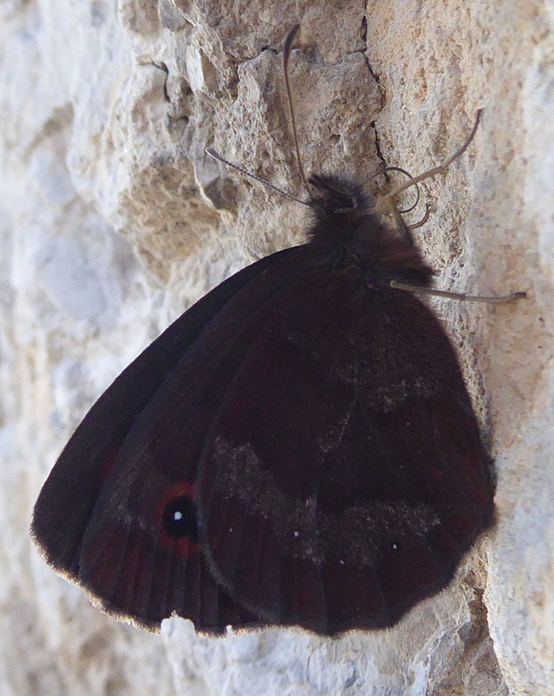 Buonasera, altra (credo) Erebia, nello stesso luogo della precedente, però è un po' diversa perché ha quattro macchiette sulle ali anteriori anziché tre. Magari è variabilità specifica, ma nel dubbio...