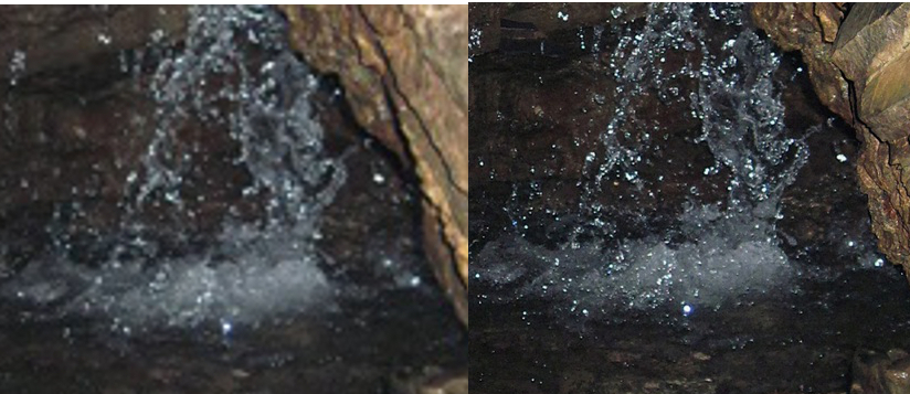 La posizione dell'acqua che cade e degli spruzzi mi sembra davvero diversa.