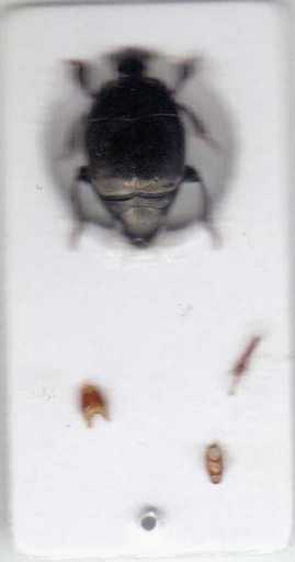 Si, "c'hai preso"...! Io preferisco incollare i genitali su un cartellino separato, posto subito sotto a quello dov'è incollato l'insetto. Qui (foto fatte a mano libera) un esempio di come dispongo i vari pezzi (in questo caso, non era necessario separare 9°-10° dall'8°, cosa che invece si fa soprattutto nei Saprininae) È preferibile che i pezzi siano incollati "in verticale" per consentire una visione da ogni parte, mentre lo spiculum (nella prima foto si intravvede dietro all'edeago), è incollato coricato. In queste immagini, per avere un soggetto abbastanza apprezzabile in foto, ho utilizzato un Placodes senegalensis Paykull, 1811 - Histeridae, Histerinae, Platysomatini