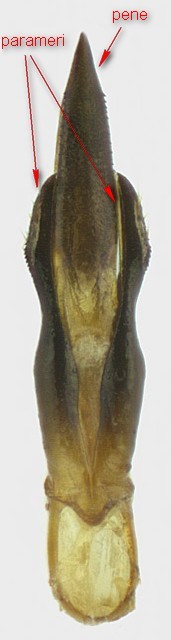 Ciao Danele, allora: 1 Edeago e fin quì ci siamo 2-3 parameri destro e sinistro o quel che ne rimane sono quelli attaccati all'edeago. 4 Urite dove staziona o è riposto l'edeago.