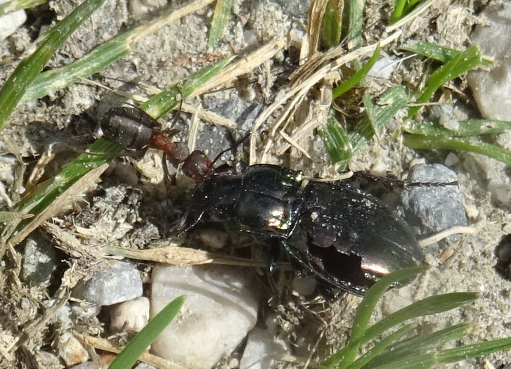 Coleottero trascinato da formica necrofora