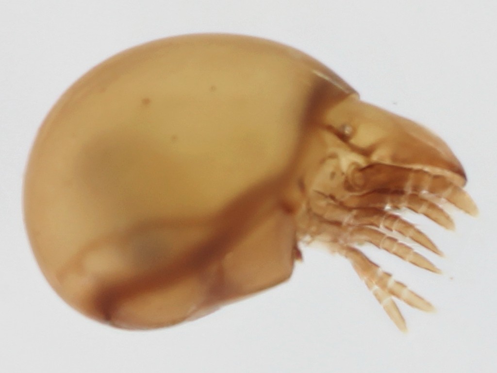 Per fare un altro esempio, la terza specie appartiene all'ordine Mesostigmata, quello che esploro io, e che conta circa 12000 specie e 70 famiglie. Si tratta probabilmente di una specie del genere Macrocheles o Geholaspis (Macrochelidae), ma purtroppo la chetotassi (che tra l'altro può dare indicazioni sulla specie, ma non sul genere, se ovviamente non si conosce abbastanza bene questa famiglia) dello scudo dorsale non è a fuoco.