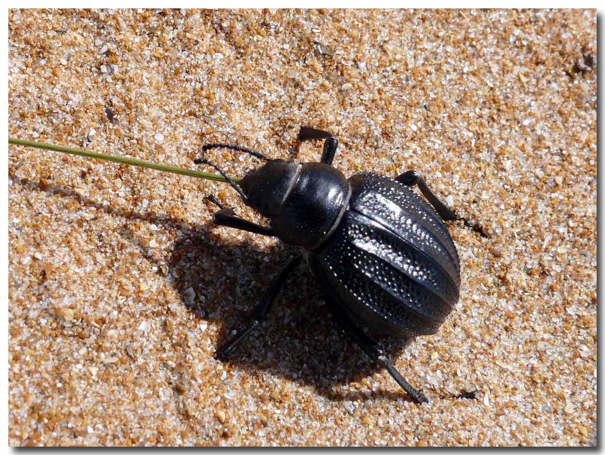Sulla sabbia, nella vicina spiaggia di Tre Fontane, alcune, (immancabili anche queste), Pimelia grossa, intente a divorare qualunque resto organico esistente.