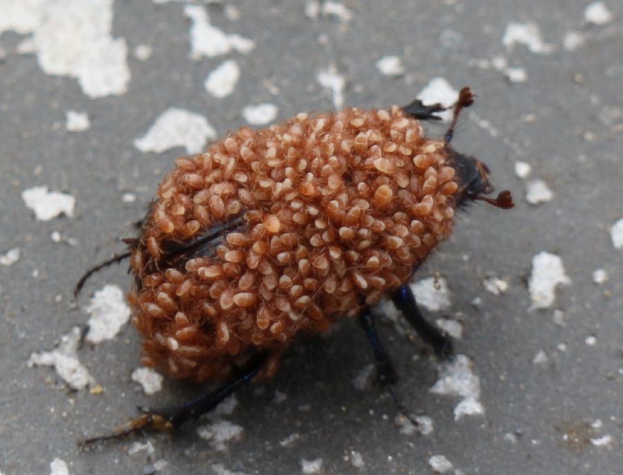 Capisco l'infestazione di un Melolontha o di un Oryctes, ma come fanno a restare attaccati a coleotteri come Geotrupes, Nicrophorus, Hololepta, che strofinano sistematicamente il corpo contro terra, legno morto ecc...