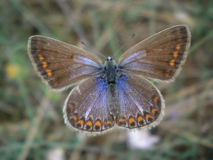 Polyommatus (Polyommatus) icarus (Rottemburg, 1775), femmina con sfumature blu - Lycaenidae -