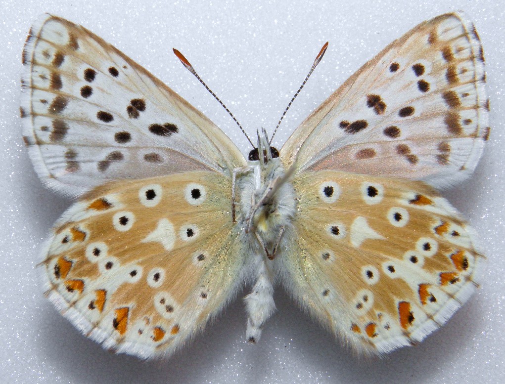 Visto che sto provando la nuova macchinetta digitale approfitto per illustrarvi anche la popolazione del Carso triestino, caratterizzata da una notevole estensione della fascia nere nelle ali sopratutto anteriori e da un colore azzurro perlaceo (purtroppo la foto non rende giustizia a questa bellissima farfalla ), anch'io ho provato a cercare ( non naturalmente per trovare la L.hyspana) una eventuale I° generazione in maggio,( come succede in Slovacchia per ila L. slovacus Vitaz, Balint & Zitnan), senza pero' risultati. Il periodo di volo parte da fine luglio e si protrae sino a fine agosto ma talvolta esemplari si trovano fino alla meta' di settembre. La popolazione si concentra in un limitato altopiano carsico ma per fortuna senza flessioni nella quantita' di individui durante gli anni.