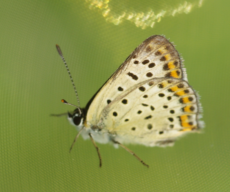 fam. Lycaenidae - con tante macchie nere sulla ala superiore...
