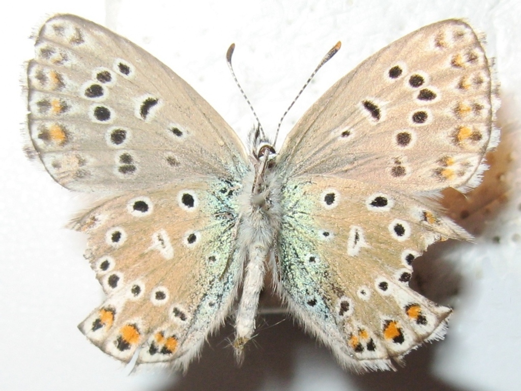 Questa strana femmina potrebbe essere una Polyommatus bellargus, per via delle frange a scacchi, ma il sotto è più da P. icarus per il numero di punti e pure per il verde cangiante alla base dell'ala. :?