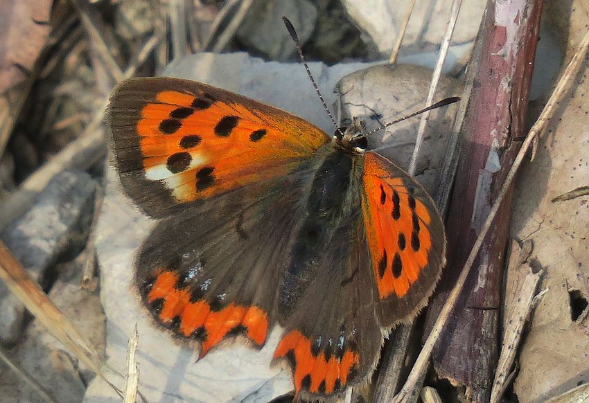 Si dovrebbe trattare di Lycaena phlaeas, ma quella macchia bianca mi lascia perplesso.