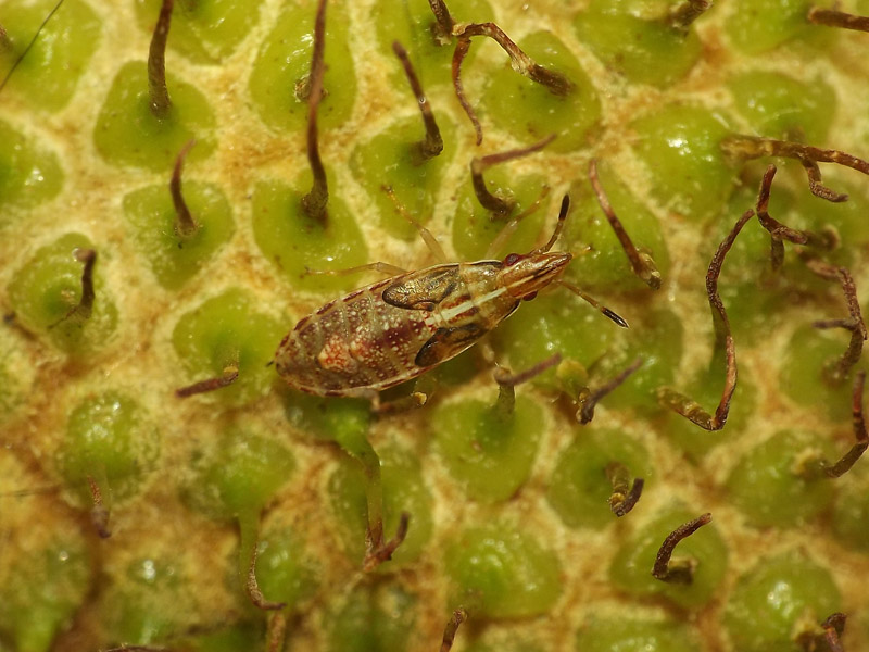 It is a nymph of Belonochilus numenius (Say, 1832), a neartic Lygaeidae living on Platanus, recently introduced in Europe; its presence in Hungary was recorded in 2012. |