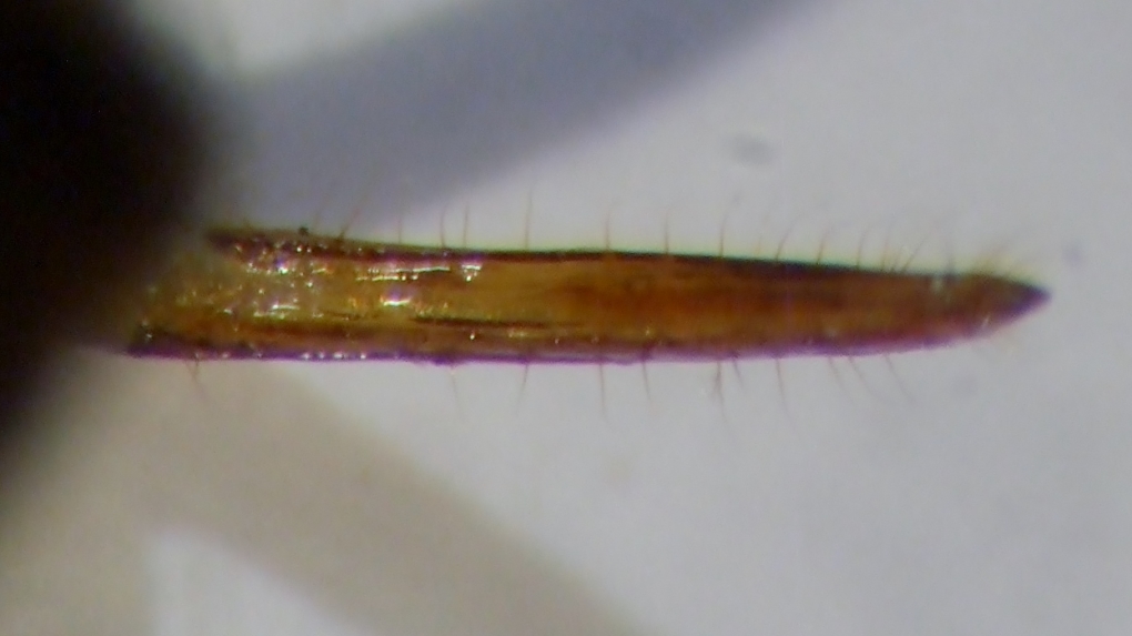 dimensioni 6,5 mm Ho cercato di estrarre parzialmente i genitali, ma ho preferito non staccarli perché non so come posizionarli e conservarli ( forse come con i carabidi ?)