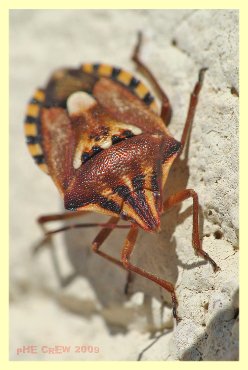 Dall'alto della mia (in)esperienza verso gli eterotteri e servendomi dell'empirico metodo, chiamato, in maniera del tutto appropriata da Roberto (Hemerobius), "il metodo dell'occhiometro", ritengo che il Pentatomidae da me incontrato a San Vito Lo Capo (TP) il 6 giugno scorso e qui fotografato, possa essere più o meno strettamente imparentato con Codophila varia (Fabricius, 1787).