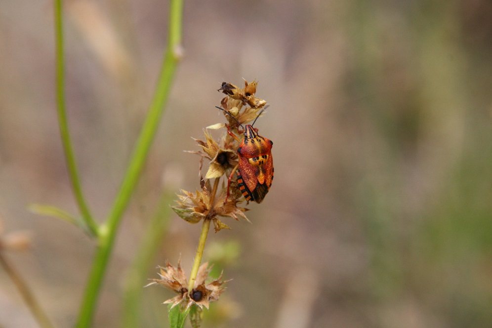 Carina cimice dai colori vivaci. Azzardando direi Carpocoris purpureipennis... Chissà mai che non indovini :D