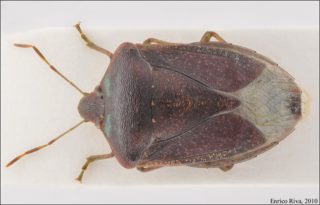 Che si tratti di una Nezara viridula (Linnaeus 1758) in colorazione invernale è ovvio. Le macchioline verdi nella zona anteriore del pronoto non sono incrostazioni misteriose, ma residui della livrea estiva verde.