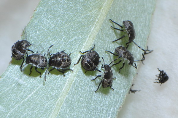 Che si tratti di Pentatomidae non c'è dubbio, ma per avvicinarsi quanto meno al genere bisognerebbe seguire l'evoluzione di queste neanidi.
