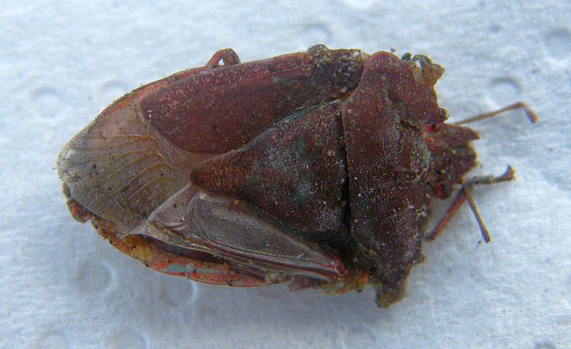 Queste carcasse semi-distrutte di Nezara viridula le ho trovate nell'atrio di una palazzina. Il colore mi ha fatto sorgere dubbi. All'inizio ho pensato alla forma aurantiaca (da morta il colore dovrebbe essere arancione scuro/marroncino), poi ho pensato alla forma vicaria (che da quel che ho letto dovrebbe essere marrone ma non so se sia presente o meno in Italia). La terza possibilità è che siano delle comuni Nezara viridula smaragdula dell'ultima generazione con la tipica colorazione scura.