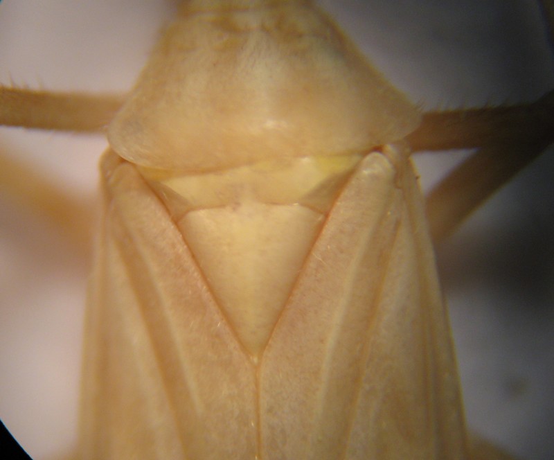 Questo grosso miride è un Miridius, ma non il comune M. quadrivirgatus (Costa, 1853), caratterizzato dalla presenza di due bande rossastre longitudinali sullo scutello. Questo appartiene al gruppo del pallidus, in cui lo scutello è interamente chiaro, ma determinare la specie a vista è impossibile perché le tre specie che ne fanno parte si possono separare soltanto esaminando i genitali. Si tratta comunque di una cattura molto interessante perché, qualunque sia la specie, sarebbe nuova per l'Italia.