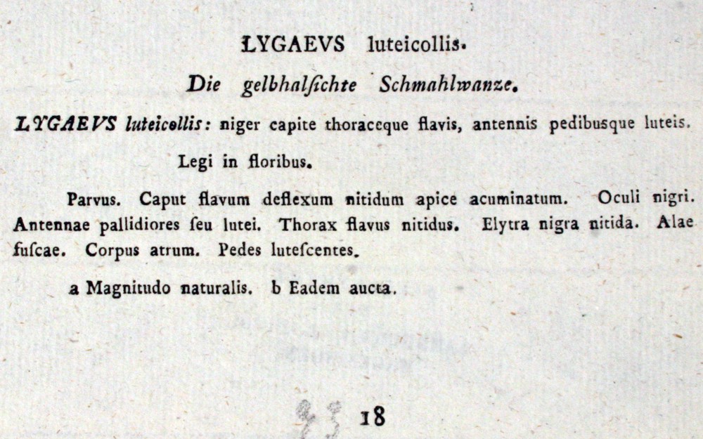 Queste due immagini rappresentano il fronte/retro di una piccola scheda del 93° "quaderno" della Faunae Insectorum Germanica Initia. Deutschlands Insekten. di Goerg Wilhelm Franz Panzer.
