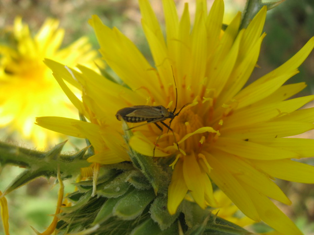 Su un cardo, questo Lygaeidae indeterminato. Dimensioni: 10 mm |