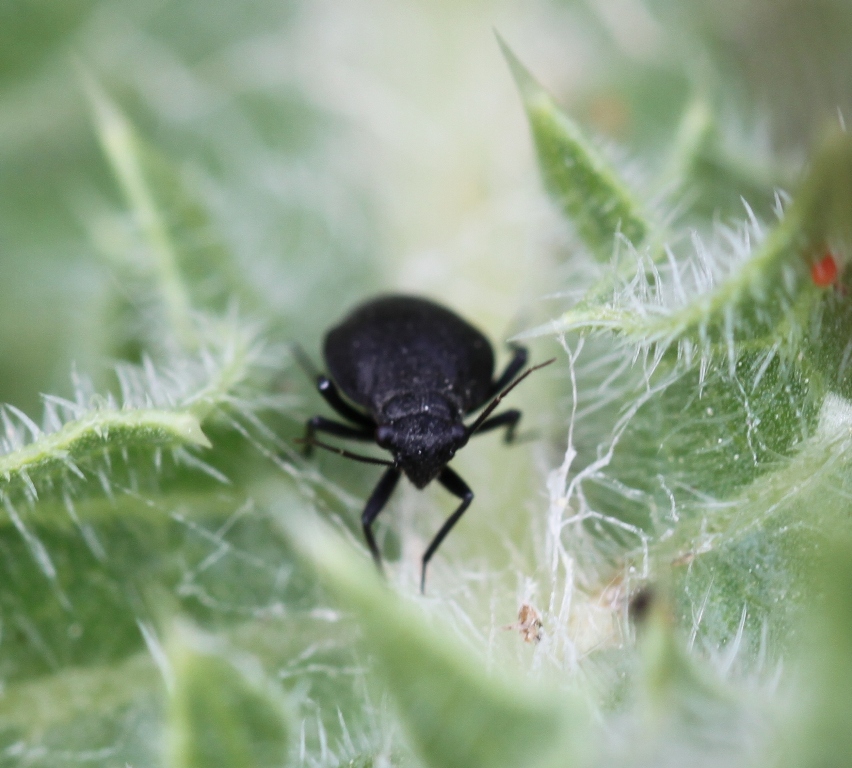 Molto veloce. Fugge immediatamente, girando sulla superficie fogliare inferiore o facendosi cadere. Su cardo. Non l'ho visto volare. Ho provato a cercare in rete e mi sembra che possa essere un Orthocephalus. Onnivoro e/o fitofago? :D