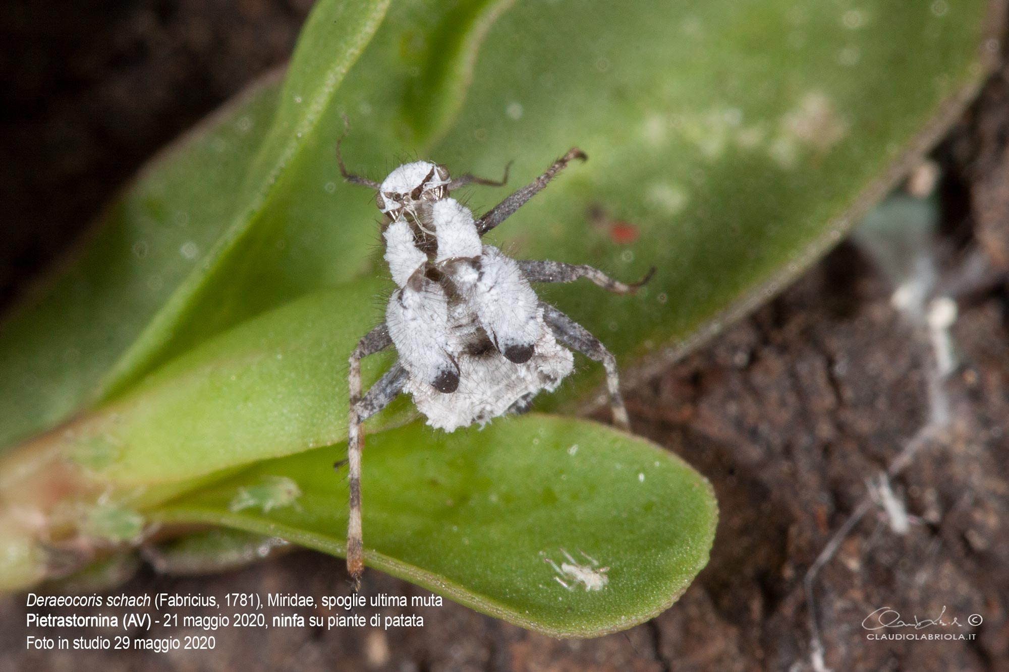 Ho fornito cibo fresco tutti i giorni e il 29 maggio c'è stata l'ultima muta che mi ha permesso di determinare la specie, si tratta di Deraeocoris (Deraeocoris) schach (Fabricius, 1781) Di seguito un paio di foto: |