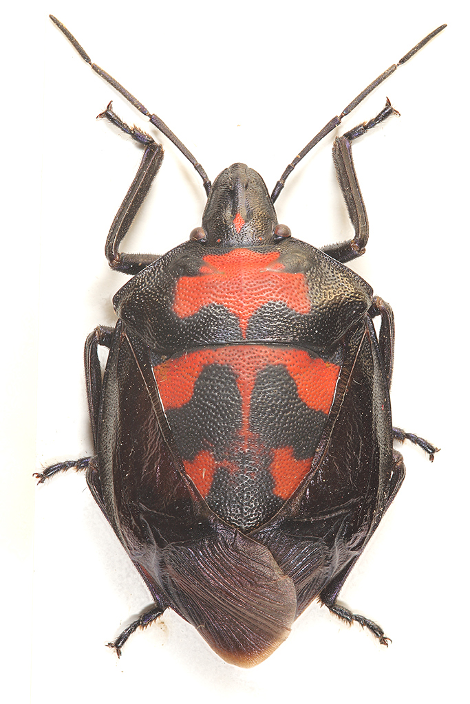 Tectocoris diophthalmus (Thunberg, 1783), Scutelleridae ampiamente diffuso nel Sudest asiatico e nella regione australiana; la sua colorazione è variabilissima.