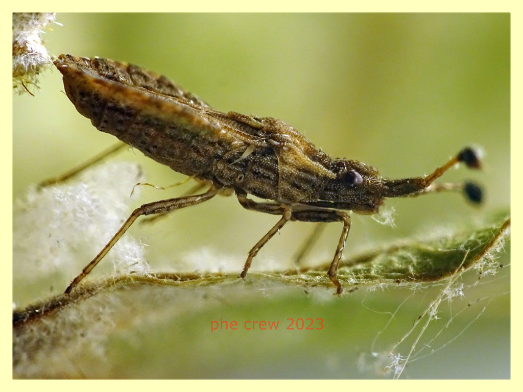 ...questo l' ho trovato attaccato al distributore di benzina....percio' non conosco ne la pianta ospite, ne la sua provenienza ....puo darsi che sia stato trasportato da qualcuno appiccicato su qualche maglia o pantalone...o probabile che sia sempre stato presente in zona ma io non l' abbia mai incontrato. Senza antenne misura quasi 7 mm.